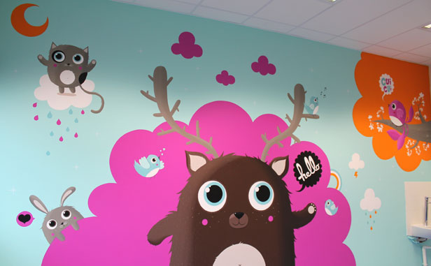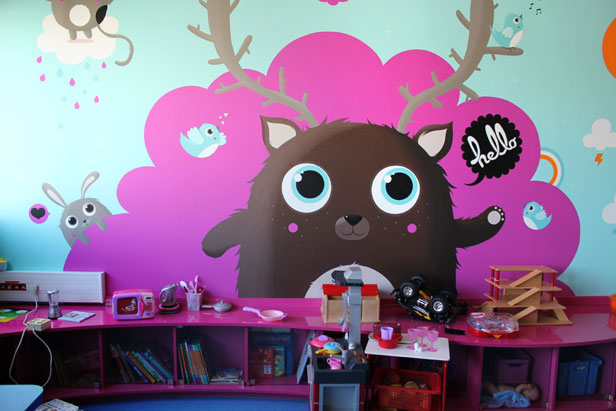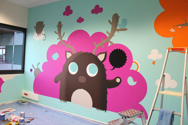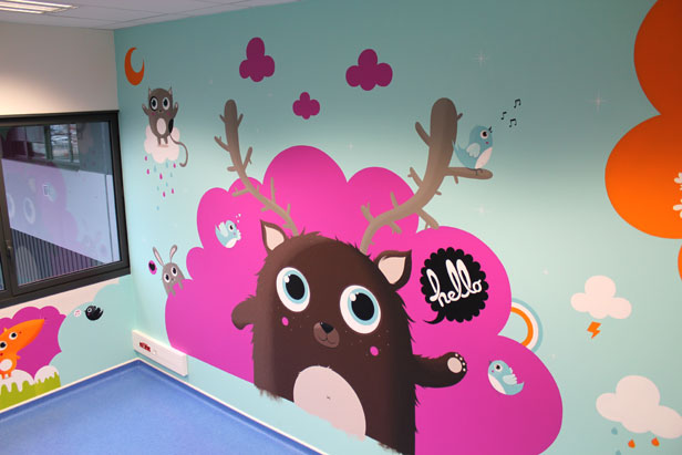 FRESQUE CHU Clermont-Ferrand / Association Acte Réalisation d'un fresque murale (5x3m) dans le cadre d'un projet d'aménagement de la salle de jeux du CRCTCP (Centre Régional de Cancérologie et Thérapie Céllulaire Pédiatrique).
